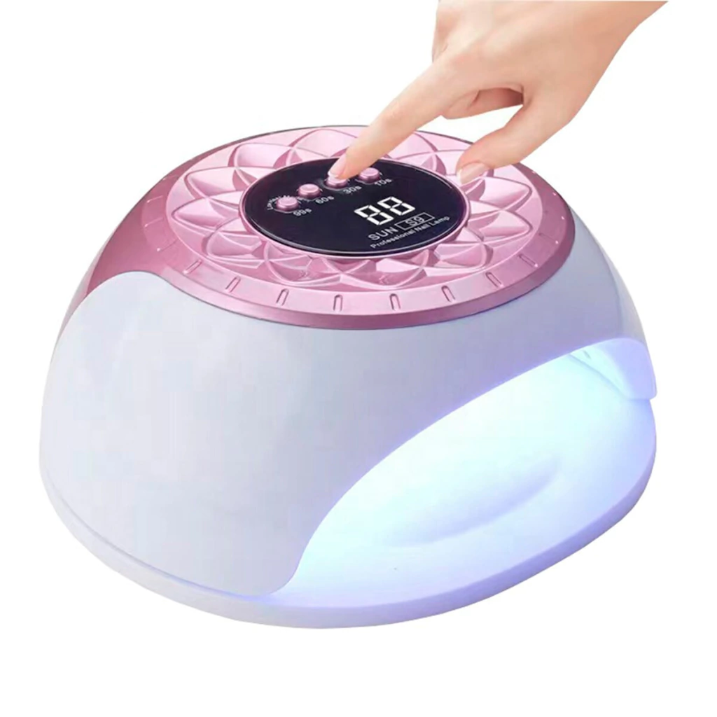 A Cabine Sun S9 Pro Rosa Metálico 268W oferece secagem rápida e completa para alongamentos, esmaltação em gel e curas de selante. Seu design moderno e elegante — com corpo branco e detalhes em rosa metálico — transforma a bancada em um espaço mais glamoroso e funcional.