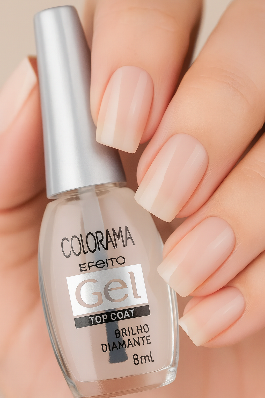 O Top Coat Colorama Efeito Gel garante brilho intenso e proteção prolongada, mantendo o esmalte intacto por até 10 dias. Sua fórmula proporciona acabamento com efeito gel, sem necessidade de cabine UV, sendo ideal para unhas das mãos e dos pés.