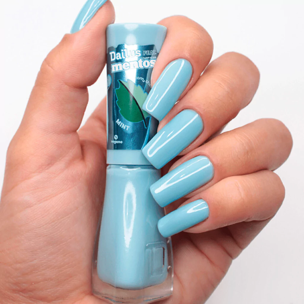O esmalte Mint deixa um cheirinho irresistível nas unhas e tem acabamento cremoso. Entrega brilho intenso, secagem rápida e longa duração.