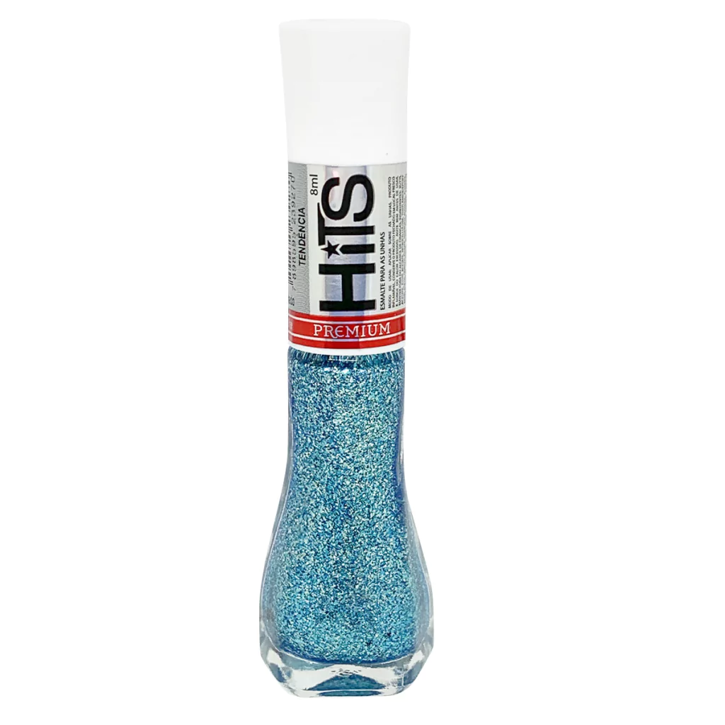 Após a cutilagem aplique a base de sua preferência e em seguida o esmalte Hits glitter e poderá finalizar com top coat de sua preferência .