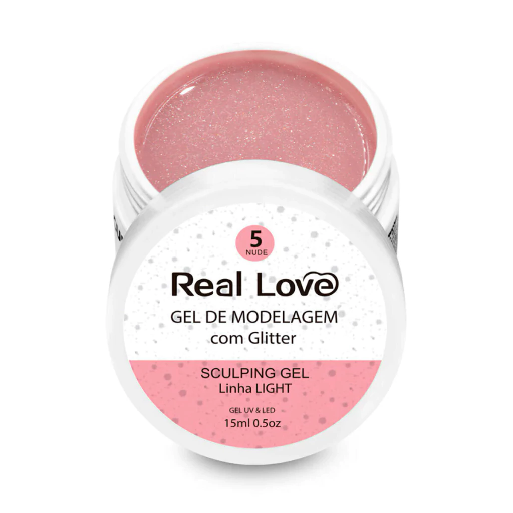 O Gel de Construção Real Love Linha Light Nº 5 Nude com Glitter é ideal para alongamentos e esculpimento de unhas com acabamento sofisticado. Sua tonalidade nude suave com toque de brilho garante naturalidade e elegância, perfeita para quem deseja unhas resistentes e com visual impecável.