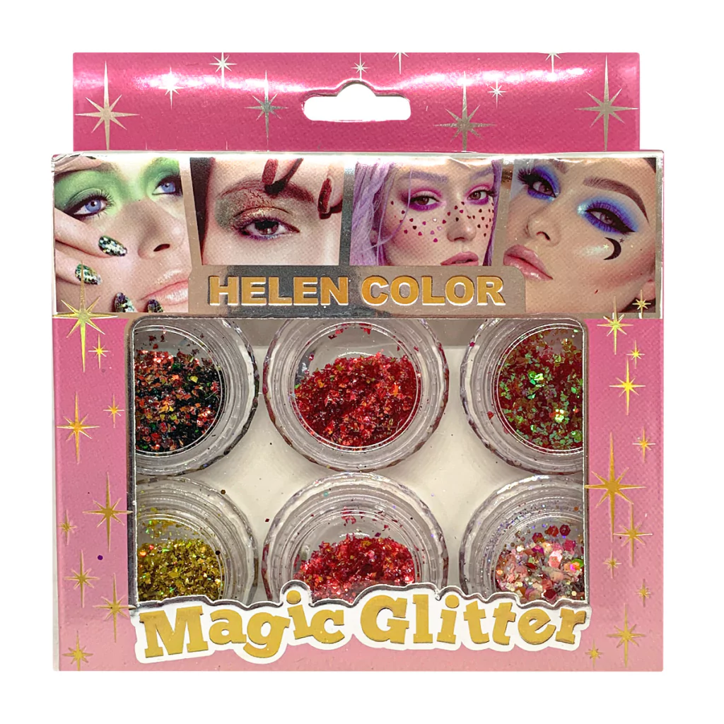 O Magic Glitter Flocado RZJF-5010 é um kit com 6 potes de glitter fino e flocado, perfeito para quem deseja criar efeitos personalizados e marcantes em unhas decoradas, adesivos artesanais, encapsulamentos, maquiagem artística e até artesanato em gel.