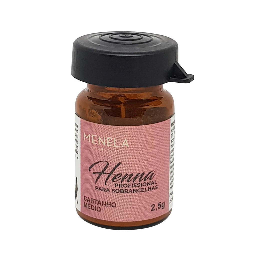 Kit inclui: - 1 Henna Castanho Médio Menela 2,5g - 1 Fixador Menela 15ml