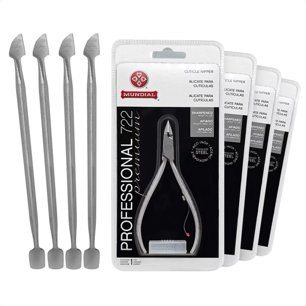 O Kit Profissional com 4 Alicates Mundial 722 e 4 Espátulas Inox é ideal para manicures, pedicures e podólogas que buscam instrumentos de alta qualidade, durabilidade e precisão. Perfeito para o dia a dia de profissionais exigentes, garantindo segurança e eficiência em cada procedimento.