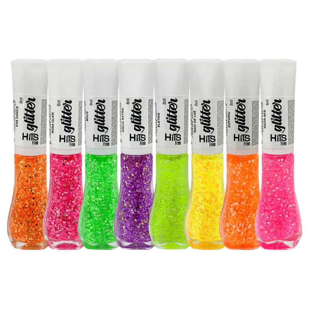 Kit Esmalte Hits Free Era Glam Glitter Neon 8 Cores
