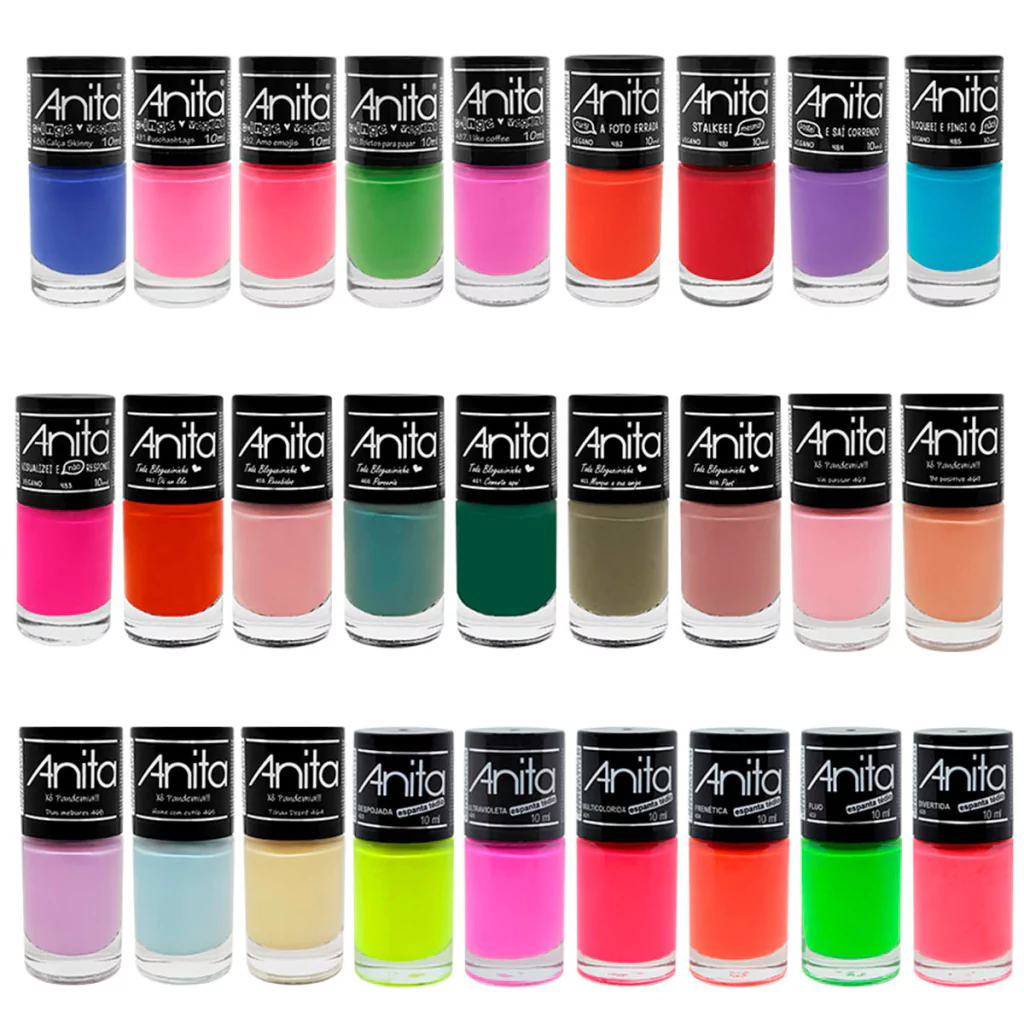 Monte seu estoque com um kit exclusivo de 100 esmaltes da linha regular da marca Anita. Ideal para revendedoras, salões de beleza e manicures que buscam variedade, qualidade profissional e excelente custo-benefício.