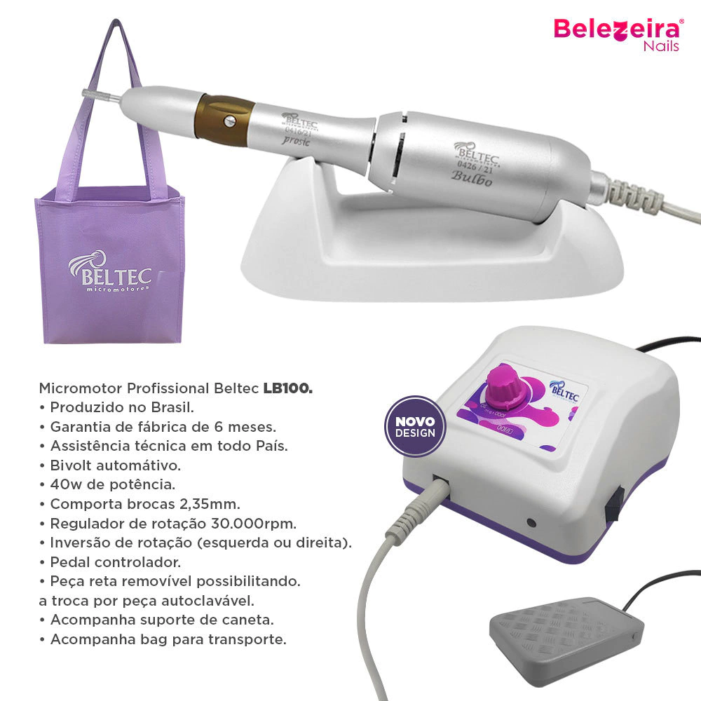 O Micromotor Beltec LB100 é indicado para profissionais das áreas de manicure, pedicure, podologia, estética, odontologia e prótese que precisam de um motor de bancada confiável e potente para uso contínuo.