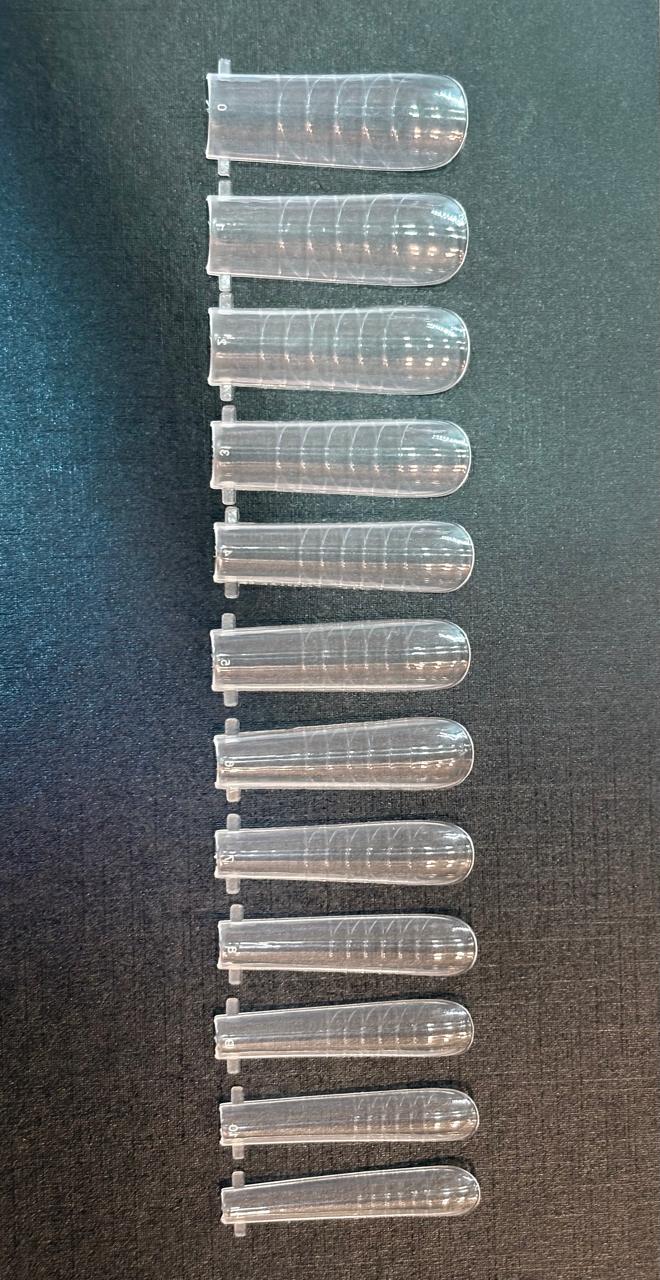Conhecido como Dual Form, esse molde utiliza a técnica de preenchimento com gel ou acrílico diretamente no molde, que é então aplicado sobre a unha para alongamento perfeito.