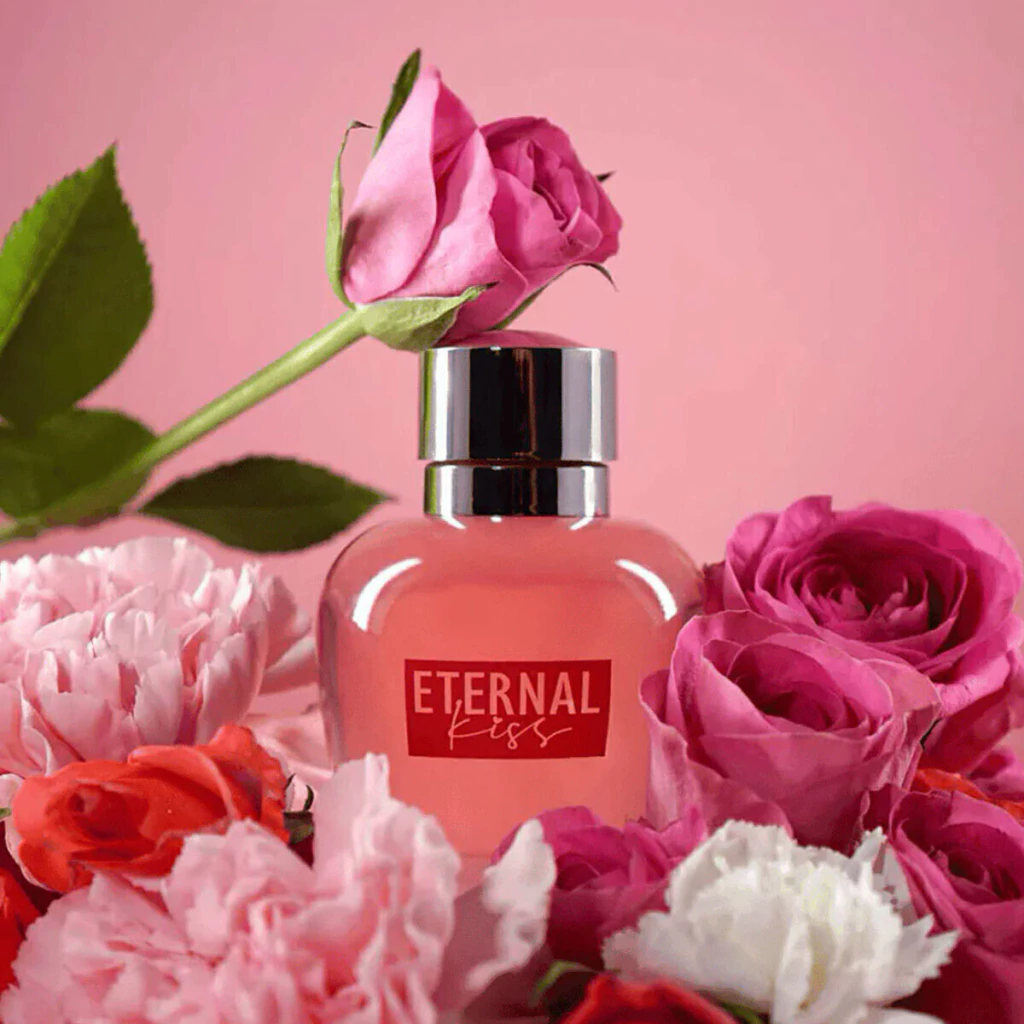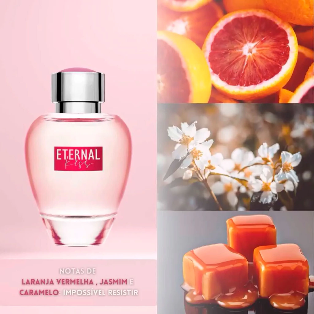 Uma fragrância feminina sedutora e envolvente, perfeita para mulheres confiantes e apaixonadas. Eternal Kiss mistura doçura, calor e elegância em uma composição marcante que desperta olhares.