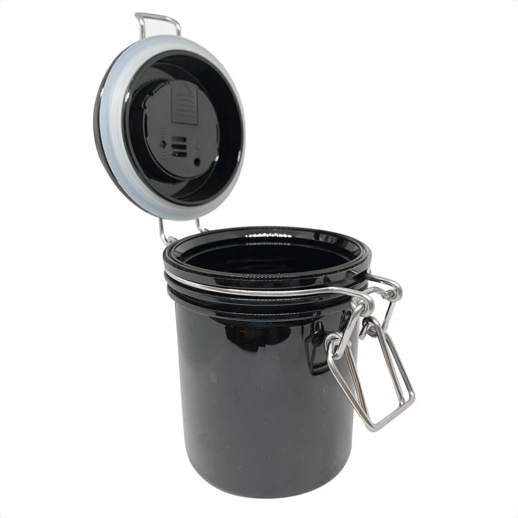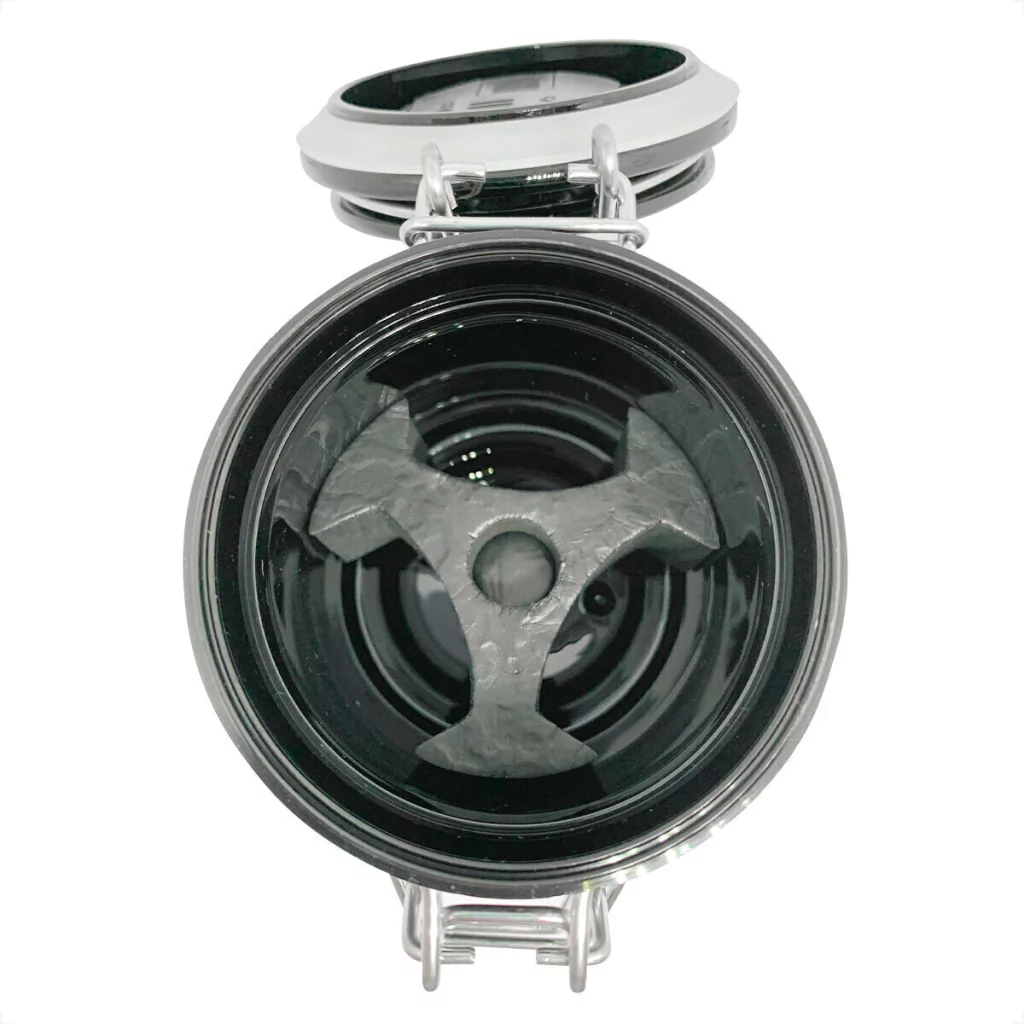 Com vedação eficiente e camada interna de borracha, o pote bloqueia a entrada de ar e umidade do ambiente. A tampa conta com higrômetro embutido, que permite monitorar em tempo real a umidade e temperatura do ambiente de trabalho — fatores essenciais para a performance da cola.