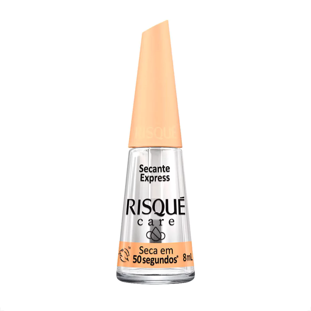 O Secante Express da linha Risqué Care foi desenvolvido para acelerar o processo de secagem do esmalte, oferecendo proteção contra poeira, arranhões e borrões. Com ação rápida, ele forma uma película leve que ajuda a preservar o acabamento perfeito da esmaltação em apenas 50 segundos.