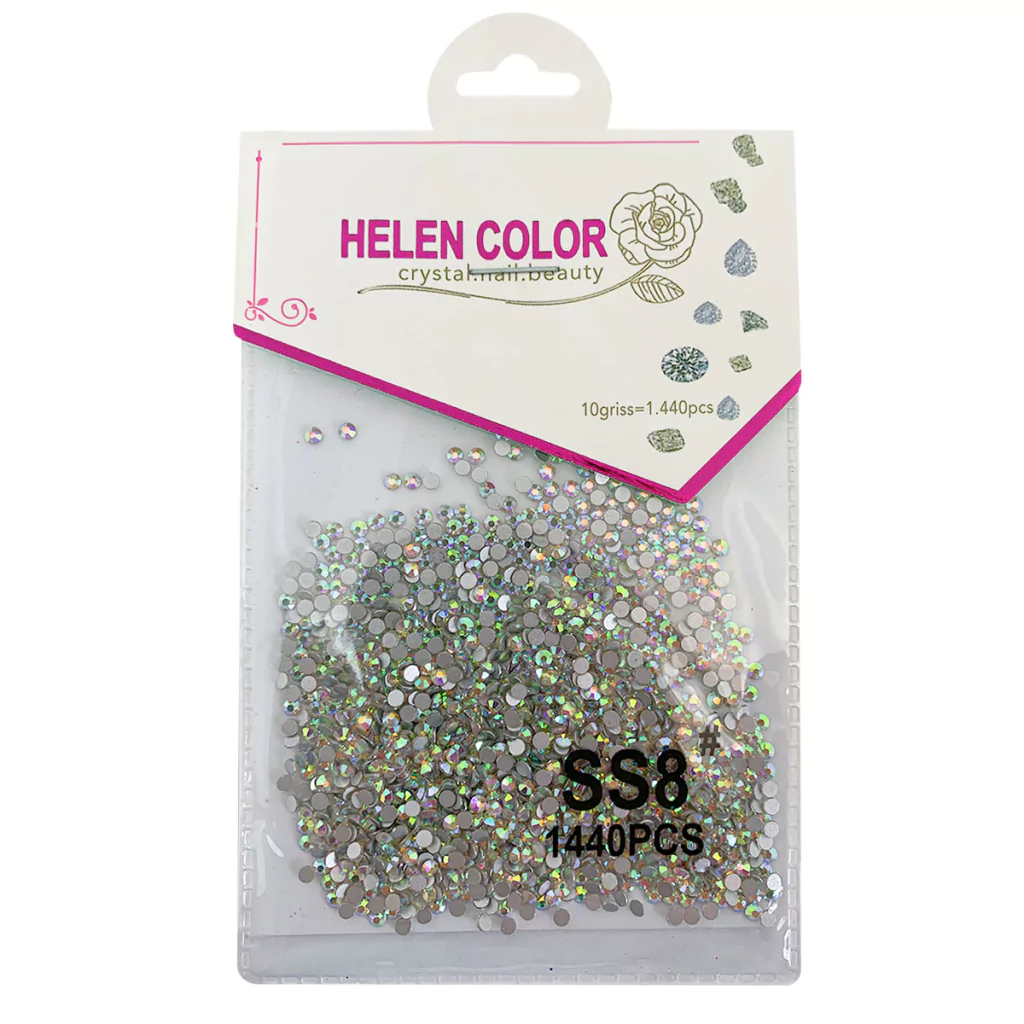 Este strass possui acabamento furta cor( multicolorido) e com efeito realista.