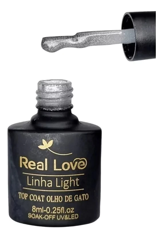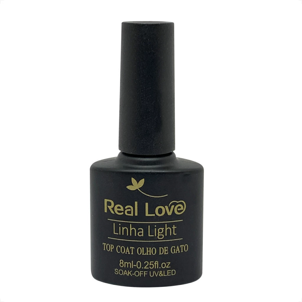 O Top Coat Real Love Olho de Gato Linha Light é a finalização perfeita para unhas em gel. Oferece efeito holográfico incrível, conhecido como Olho de Gato, que reflete diversas cores sob a luz, proporcionando um acabamento sofisticado, moderno e com muito brilho.